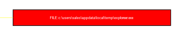 Once ProcDot graphs all active processes and network activity, after looking through the data we can see the file path where exloreer.exe was initially executed. c:\users\sales\appdata\local\temp\exploreer.exe.